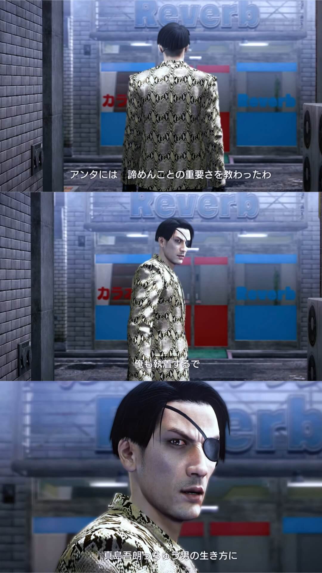 真島の兄さんくらいの漢になれば「片想い」すらサマになってしまう。失恋=華。龍が如く5の「渡瀬の土下座」に通づるものがあります。